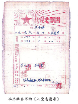 图4:毕序麟填写的《入党志愿书》 来源:《红色珍藏》