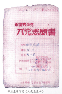 在“入党动机”一栏中写道:“民为邦本,本固邦宁。”意思就是说要想国家富强,必须团结人民、组织人民;要想团结人民、组织人民就必须有代表人民利益的政党来领导。在中国,只有共产党才是真正为人民服务、代表人民利益的政党,他愿意为共产主义奋斗到底。