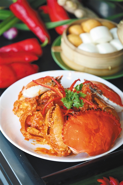 新京报讯 (记者曲亭亦)8月1日至14日,北京东方君悦大酒店凯菲厅特别推出新加坡美食,来自新加坡的行政总厨欧阳庆成师傅打造家乡特色美食,推荐菜品包括欧阳秘制黑胡椒明虾、新加坡辣椒蟹、传统美味肉骨茶、叻沙汤面及榴莲泡芙等。