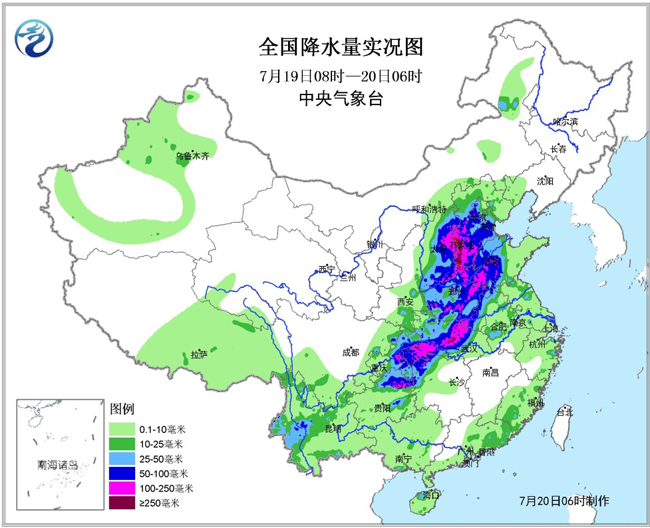 19日,华北、黄淮、江汉等地出现大范围强降雨,50毫米以上的暴雨面积达63.5万平方公里,其中河北南部、河南北部、湖北中部和西部等地出现250毫米以上的特大暴雨,山西、河北、湖北的17个县市日降雨量突破历史极值。中央气象台今晨继续发布暴雨橙色预警,预计北京、天津、河北中东部、辽宁中南部等地仍将有暴雨或大暴雨天气。