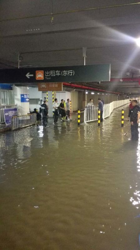 央广网快讯:北京西站北广场地下进水,北京市公安局消防局丰台支队西客站中队官兵正在使用手抬泵和浮艇泵进行抽水。