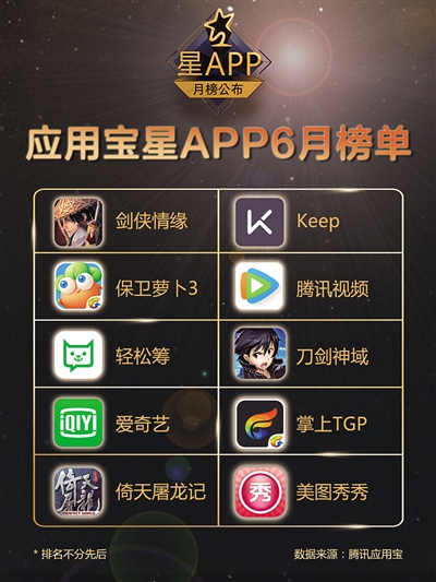 除游戏外,娱乐类APP也在6月榜单中大放异彩,腾讯视频、爱奇艺、美图秀秀等娱乐及泛娱乐APP纷纷上榜。其中,腾讯视频与爱奇艺不仅在榜单中尖峰对决,更将在暑期档的用户智能终端产生激烈交锋。腾讯视频将相继首播《青云志》、《九州天空城》等仙侠巨制,而爱奇艺则携《老九门》、《余罪》征战暑期市场,在两家上演“用户屏幕”保卫战的同时,更为用户奉献了一场暑期档的视听盛宴。