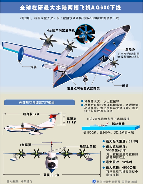 图表:全球在研最大水陆两栖飞机AG600下线 新华社记者 赖雨辰 孟丽静 编制