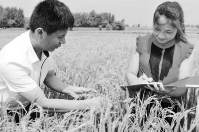 7月21日,河南省信阳市光山县斛山乡范乡村众森高效生态合作社社员正在田间研究、察看、记录头茬再生水稻灌浆状况、结实粒情况和再生水稻抽穗管理技术。该合作社规模化种植再生水稻5年,2016年种植面积达到6150亩。再生水稻种一季收两茬,亩均比常规杂交水稻增收700元以上,带动当地34户贫困农民种植再生水稻,户均年增收2.3万元。谢万柏摄