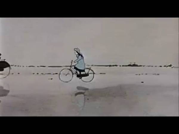 不知过了多久,女孩终于找到了心上人。她不再自己一个人骑车,而是由她的男友骑车带着她。