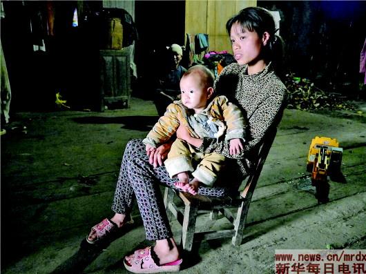“我走不了。我走了就没人看孩子了。”瘦削的韦爱连坐在小木椅上,怀里的小六不耐烦地扭扭身子,她就撩起上衣喂几口奶水。