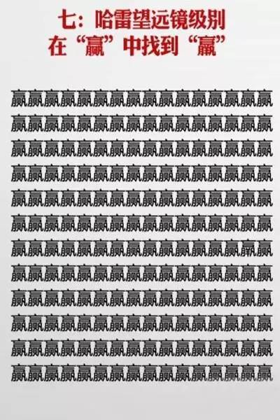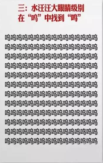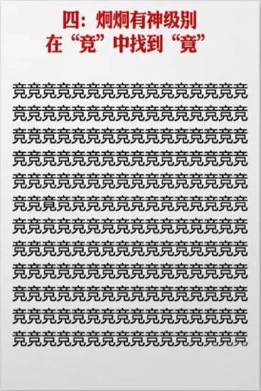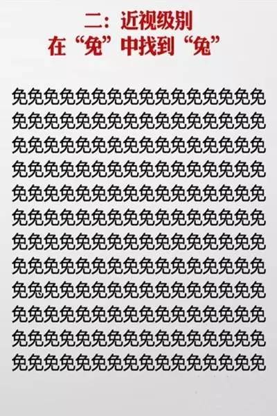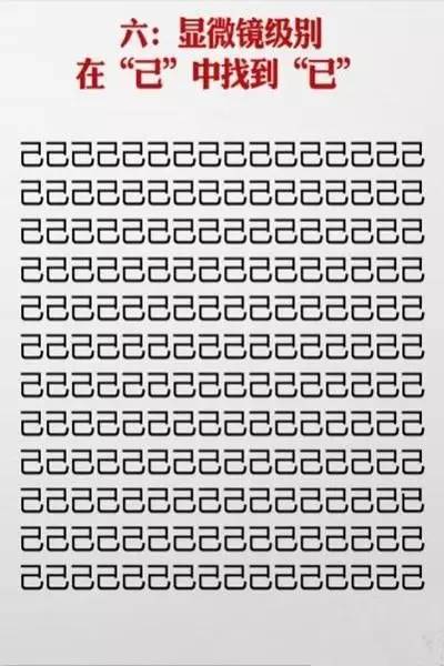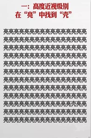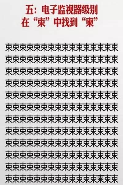 近日网上流传一套神级视力表,在一堆相似的汉字中找不同,据说很多人只挑战到第六关就过不去了,你能玩到第几关?