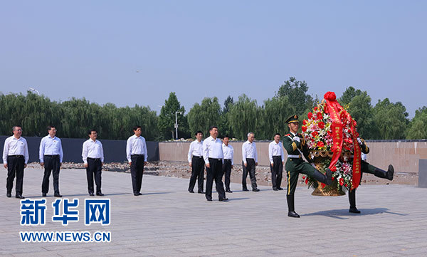 7月28日,中共中央总书记、国家主席、中央军委主席习近平到河北唐山市调研考察。这是习近平在唐山地震遗址公园向唐山大地震罹难同胞和在抗震救灾中捐躯的英雄敬献花篮。新华社记者 兰红光 摄