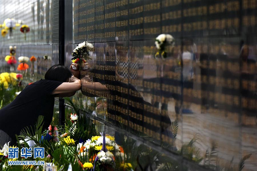 7月27日,一名女士在唐山大地震罹难者纪念墙悼念遇难者。唐山大地震罹难者纪念墙,镌刻着罹难的24万同胞的姓名。墙高7.28米,代表7月28日,墙体距水面19.76米,代表1976年。这个日子世人永远铭记。纪念墙,是逝者的归宿,痛苦的终点;更是思念的起点,力量的源泉。墙上的名字,是亲人的墓碑,唤我们到此,缅怀亲情。更是亲人的目光,送我们出发,超越苦难。超越痛苦之渊,方致前行之远。“然唐山不失为华夏之灵土,民众无愧于幽燕之英杰,遭此灭顶之灾,终未渝回天之志”。唐山抗震纪念碑碑文如是说。新华社记者 吴晓凌 摄