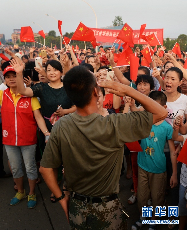 7月28日,一位士兵向前来送别的群众敬上“最后一个军礼”。