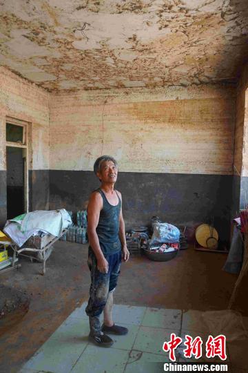 “我这间房有3米3,下面的地台还有1米多,你看,洪水下来的时候,水都没过我家一楼的屋顶,冲进二楼了。”在南峪镇台头村商业街经营商店的许拉柱指着屋顶说。