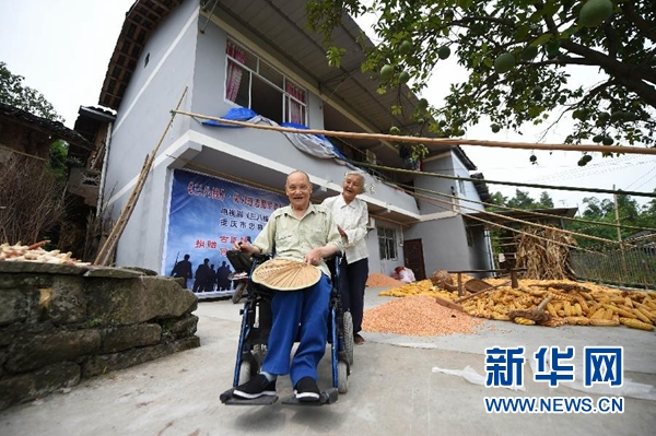 古臣坤和妻子何光英在重庆忠县双桂镇石宝村的屋前院坝中(7月27日摄)。新华社记者 唐奕 摄