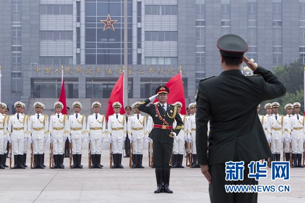 “中国人民解放军仪仗队列队完毕,请您检阅!”