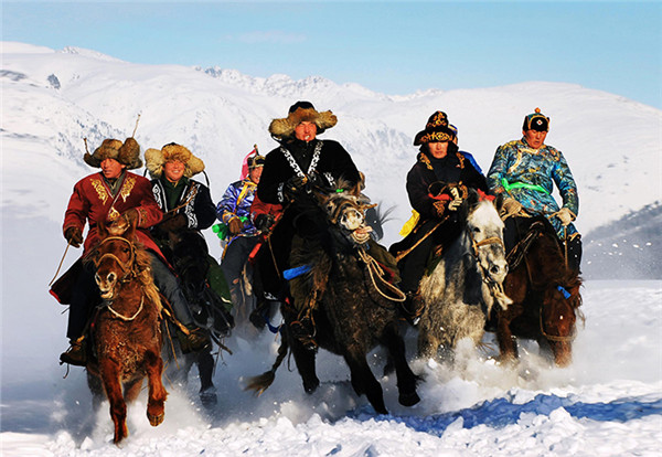 “英雄靠骏马,飞鸟凭翅膀。”草原赛马、叼羊都是布尔津哈萨克族传统的民间体育娱乐活动。