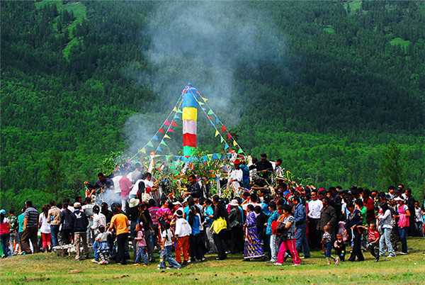 敖包节又称“塔克恩”节,是蒙古族图瓦人祭祀天地日月大自然的节日,一般在五月至七月举行。图瓦人选在水草丰美的地方,临时搭起蒙古包,牧民们携儿带女,载歌载舞,气氛隆重热烈。