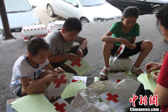 小志愿者们正在对救灾物资进行分装和贴标。 河北省红十字会 摄