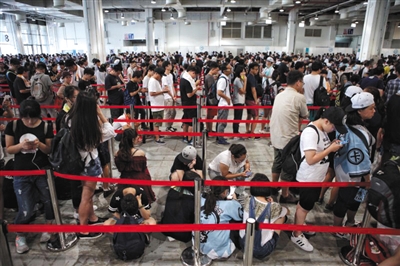 SNH48每年总选后的第二天都会安排大型的握手会。图为排队等待入场的粉丝。