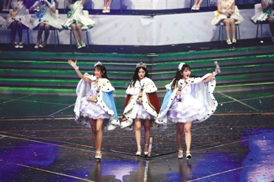 鞠婧祎(中)、李艺彤(右)、黄婷婷(左)成为SNH48及姐妹团第三届总决选的新“御三家”。
