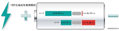 *ST江泉主业为铁路、热电等方面传统业务,近年来发展不佳导致公司业绩持续下滑:2014年亏损1689.62万元,2015年亏损34049.25万元。直到今年上半年扭亏为盈,盈利4071.22万元。