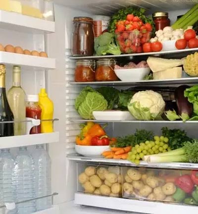 食物不能摆放过多,与冰箱壁之间要留有空隙,便于空气流通;吃剩的饭菜生熟分开,避免交叉污染,一般熟食品在上,生食品在下。冷藏室的温度上低下高,因此鱼、肉等动物性食品宜放在上面,而水果、蔬菜等放在下面。冷冻柜内,冷饮等直接入口的食品放在上层,冻鱼冻肉则放在下层。