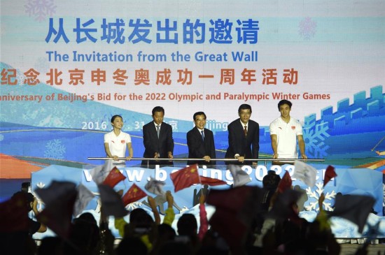 人民网北京8月1日电(记者 张雨)7月31日,在北京成功申办2022年冬奥会一周年之际,北京冬奥组委在长城脚下隆重举办“从长城发出的邀请”活动,面向全球征集2022年冬奥会会徽和冬残奥会会徽设计方案。与此同时,北京2022年冬奥会和冬残奥会组织委员会官方网站正式上线。中共中央政治局委员、北京市委书记、北京冬奥组委主席郭金龙,市委副书记、市长、北京冬奥组委执行主席王安顺出席活动。