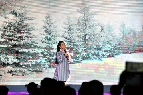 著名歌手谭晶演唱了申冬奥歌曲《冰雪舞动》。人民网记者 张雨摄