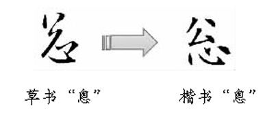 那么,“聰”为何又写作“聡”呢?其实,“聡”字右部“上公下心”的写法是“悤”的草书楷化(见图二)。后来,草书楷化也成了汉字简化的一种重要方法。因此,所谓 “公心为聪”的说法纯属望文生义。