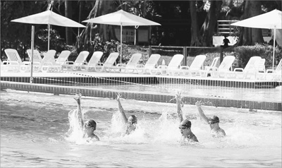 当天记者探访的最后一个场馆是中国花样游泳队所在的训练泳池。在节奏感十足的音乐旋律中,花游运动员正在教练的指导下进行训练。当天上午11时,圣保罗的室外气温不到20摄氏度,来访的记者都穿着厚厚的外套,但水中的姑娘们穿着泳装一遍遍在水中潜入、跃起,聚拢、打开。中国花滑队的日本籍教练藤木麻佑子说,中国队已为里约奥运会“做好了准备”。
