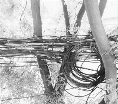 漫步在城市的各个角落,稍加留意就不难看见盘踞在我们头顶密密麻麻的各路线缆。这些线缆多为电话、网络的光缆,有的地方似蜘蛛网一般,一些被剪断的线缆被随意弃置,成为绊脚线,不仅有很大的安全隐患,也影响了城市容貌,造成线材的浪费。这种现象,折射出的是管理上的松懈以及相关部门对材料领用的随意性。