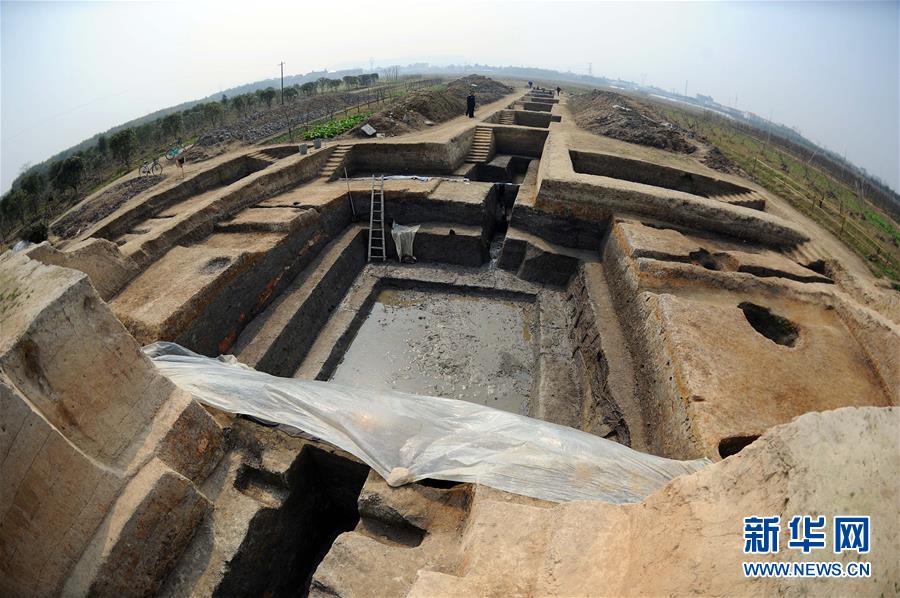 这是正在发掘中的良渚古城遗址(2011年3月9日摄)。