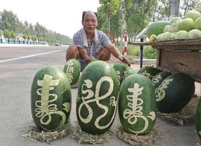 平顶山郏县白庙乡黑庙村56岁的教师谷心亮无意间在自家出售的西瓜上“书写”字画,打开了“西瓜难卖”的市场。11天时间,他家种植的6000斤早熟西瓜,在他的“挥毫”下销售一空,连带半亩2000斤甜瓜也快售罄。
