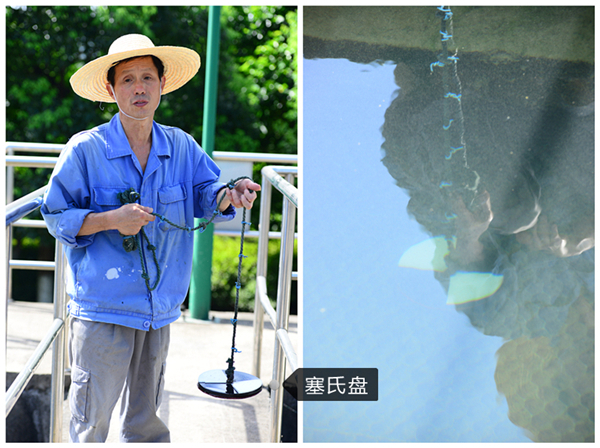 蒋站长用塞氏盘测出沉淀池水能见度为150cm