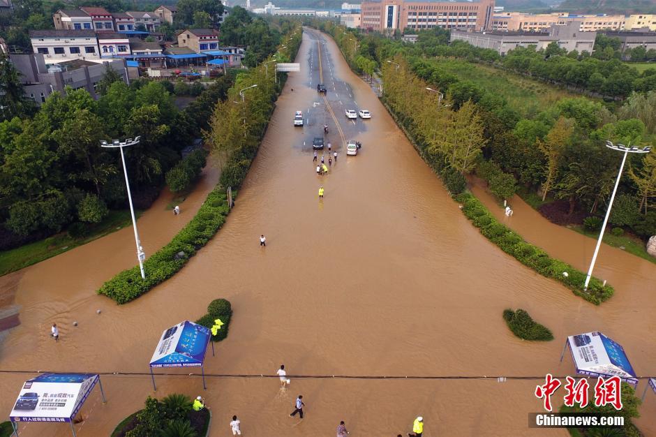 8月3日,湖北省宜昌市猇亭区遭受大风暴雨天气,多处道路被淹,犹如一条条“黄河”。当天11时许,猇亭区开始降雨,3小时累计平均降雨量108.2mm,最大降雨量出现在云池雨量监测站,为169.5mm。暴雨导致多数道路、部分农田被淹,少数厂矿企业、房屋进水,部分居民小区、学校积水,少数地方出现滑坡险情。目前,当地政府正带领群众全力抗灾自救、救援抢险。图为公路犹如“黄河”。 周星亮 摄
