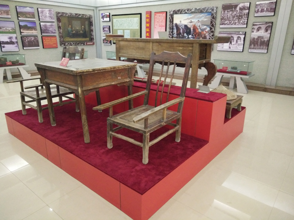 纪念馆内陈列着的红军留下的扁担、马灯、藤篮、工具箱、饭盒、水壶、火药盒、钟表、手雷、医药箱……无不传递着将台堡“火红”的历史印记。