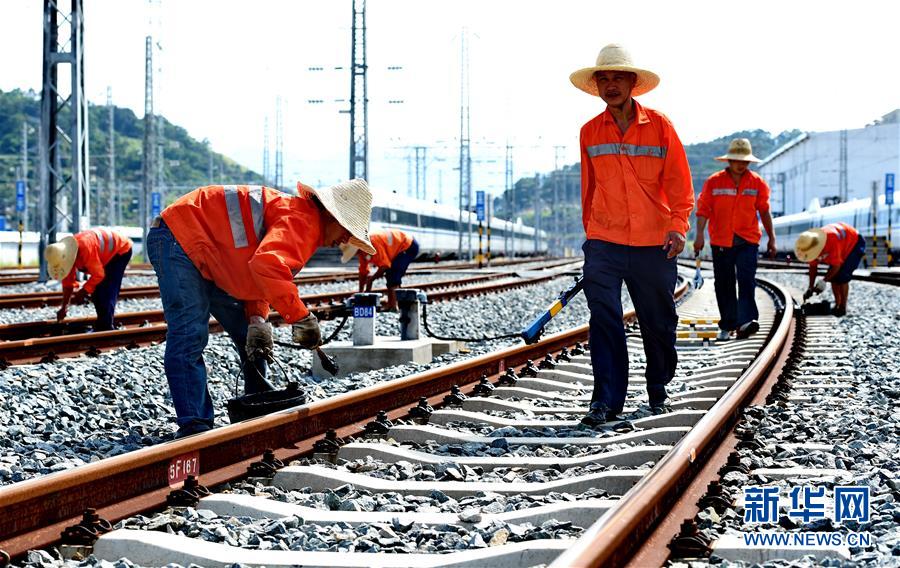 8月3日,南昌铁路局福州电务段信号工在40℃高温环境下维护轨道电路。持续高温天气里,南昌铁路局福州铁路地区职工坚守在岗位一线,确保铁路安全运行。 新华社记者 张国俊 摄