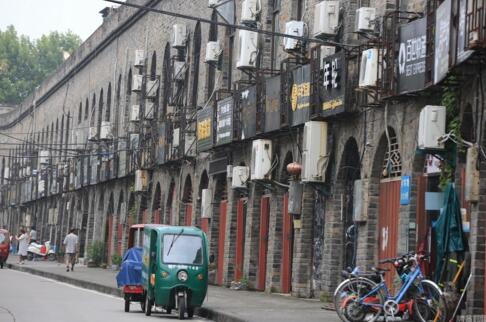 湖北一明清古城墙上挂满空调机 百余店铺开在城墙里