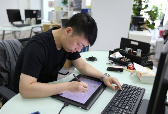 动画员是动画制作里面比较基础的工种,通过绘制多幅画面,将一个镜头中角色的动作连贯起来。要做到画面细腻流畅需要动画员准确绘制关键时间节点的动作变化图。“在电视上播出时长1秒的动画镜头,需要手绘十几到几十张画面。”张振晖说。