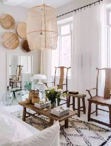 中式家具普通人家家居面积有限,因此,在新中式风格中,运用设计感强烈的中式桌椅家具,结合传统明清家具的结构,就能实现“四两拨千斤”的效果。
