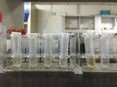 检测:从量杯中分别取1ml的浸泡液,滴入1.5ml的离心管中,滴入2滴甲醛检测试剂后,静置5分钟左右,观察其颜色变化。若样品呈现橙黄色或红色,说明其中含有甲醛成分;颜色无变化则无甲醛。