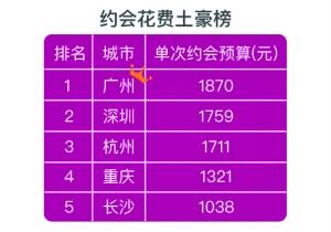 广州/深圳男最土豪 成都/沈阳男最节俭