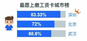 谈及钱,也就涉及到家庭财政大权的归属问题。本次调查显示,有72.27%的男性明确表示婚后愿意让妻子保管自己的工资卡,除此之外,还有12.57%的男性虽表示不情愿,但“只要她开心,还是会给”,宠溺之心可见一斑。这方面最宠妻子的要以深圳为首,愿意乖乖上缴工资卡的男性比例达到83.33%,其次是北京,占比达到72%,武汉男紧随其后,比例达68.6%。