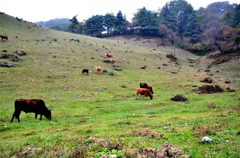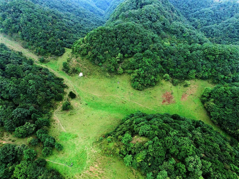 行至深处,层层山林之后,是一片开阔苍茫的秦巴大草甸,无边无际的草地上,散落着23个蒙古包似的小山包。草甸生长着茂密的灌木、蕨类植物、白桦等等,草甸中还藏着不少野兔、野鸟,甚至是野猪、野羊,锦鸡、知了、画眉、云雀等野生动物,生机勃勃。水磨沟内木本植物有165科301种,野生动物78科273种,其中国家一、二级重点保护的野生动植物就有28科54种。