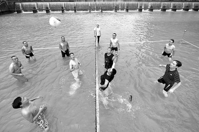 8月9日,湖北省恩施土家族苗族自治州宣恩县城区水上运动会“水上排球”项目开赛。来自武陵山区46个县市(区)的1200余名运动员在贡水河上尽情狂欢,健身娱乐享清凉。