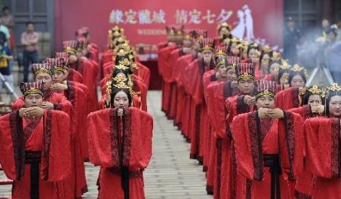 七夕佳节,山西22对新人百年文庙举办汉式集体婚礼