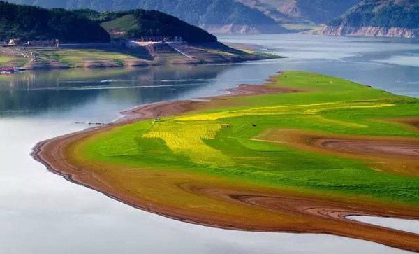 层层涌动的黄色花浪,白鹭嬉戏于绿水之间,成群的牛羊在草地上闲逛,水天一色的江岸、悠闲飘过的渔船是绿江独有的风光,让你的眼、鼻、心为之彻底的沉醉。