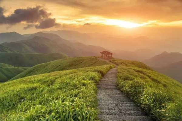 延绵起伏的山峰,波浪一般的葱绿草甸,和瞬间涌动的云海奇观,让武功山成为徒步爱好者心中的天堂。