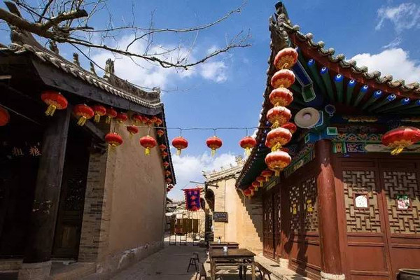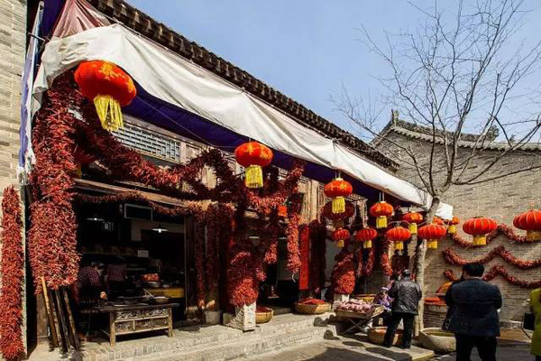 一排排错落有致的青瓦房檐下挂着的大红灯笼,散发着浓厚古朴的关中韵味,仿佛回到了那到处是小商贩吆喝的关中老街市。