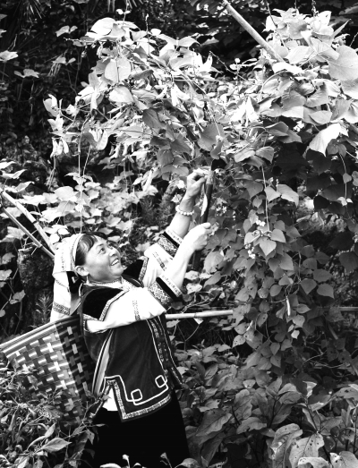 8月9日,贵州省安顺市西秀区弯子寨的仡佬族同胞迎来本民族的传统节日“吃新节”。“吃新节”是仡佬族古老的歌颂丰收的节日。图为仡佬族同胞在地里“采新”。