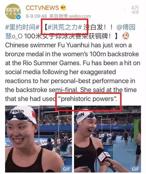 当傅园慧在电视上一时嘴爽说出“洪荒之力”时,最崩溃的是字幕组:我天,这“洪荒之力”是什么鬼?用英语咋翻译啊?!鬼都不知道啊。。。