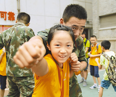 8月12日,北京市西城区月坛街道《人文月坛》报小记者团来到当地武警驻地,和“兵哥哥”一起打拳,体验军营生活。据了解,每年寒暑假,月坛街道都会为当地青少年组织丰富的活动,让他们在趣味活动中增长见识。